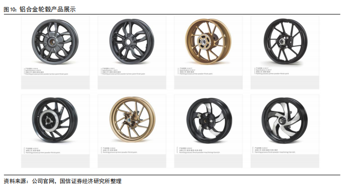 作为轻量化镁合金新材料深加工业务全球领导者,年产能 1,800 多万套,在产品仿真设计、模具设计以及产品压铸等方面具备较强的竞争优势,同时公司产品储备丰富,并能够完成大型一体化镁合金压铸件的设计与制造,主要产品涉及动力总成、前端载体、仪表盘支架、后掀背门内板、侧门内板等汽车部件。镁合金新材料依托于海外先进的技术,逐步引入国内实现商业化落地,并力争从客户与产品两个维度实现国内新能源主机厂的开拓。轻量化铝合金产品年产能 4,200 多万套,致力于汽车、摩托车高端铝合金车轮研发、制造、销售及售后服务,实现细分行业全球领跑。汽车铝合金车轮充分发挥轻量化技术应用优势,卡位新能源赛道,抓住传统车向新能源汽车转型的机遇,与主流新能源车企开展战略合作,为比亚迪、奇瑞、赛力斯、大众等主机厂重要的合作伙伴。在国内汽车竞争加剧的大环境下,公司凭借灵活的机制持续优化客户结构、提升经营效益,并积极推进新工艺在汽车铝合金轮毂领域的应用,力争在国内汽车消费升级的趋势下,能够通过新工艺、新产品的创新提升单车配套价值量。摩托车铝合金车轮持续构建以中国市场为基础,印度市场为核心,不断发展日本、东南亚、欧美市场,通过智慧化工厂的改造升级,业务逐步实现制造升级。