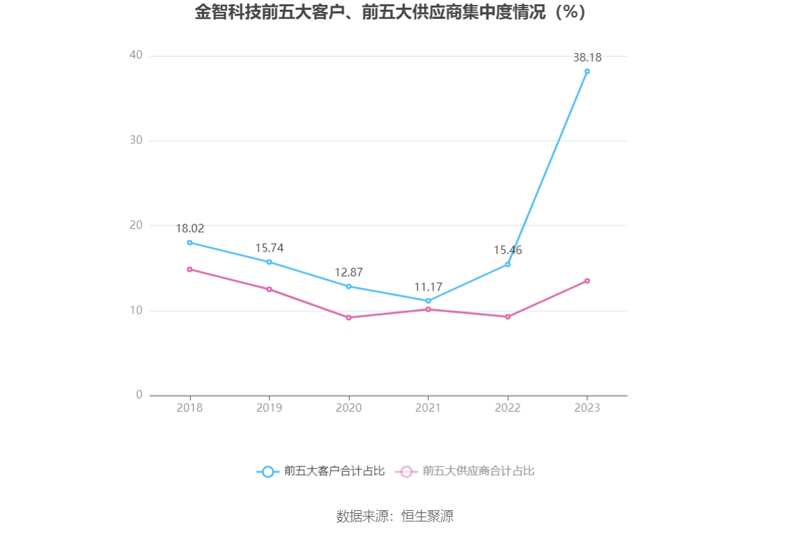 报告期内,公司前五大客户合计销售金额6.17亿元,占总销售金额比例为38.18%,公司前五名供应商合计采购金额1.49亿元,占年度采购总额比例为13.52%。