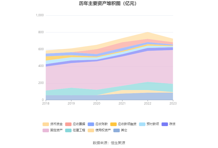 负债重大变化方面,截至2023年年末,公司应付票据较上年末减少73.60%,占公司总资产比重下降5.44个百分点;一年内到期的非流动负债较上年末增加25.73%,占公司总资产比重上升2.60个百分点;长期应付款合计较上年末减少20.76%,占公司总资产比重下降0.79个百分点;长期借款较上年末增加15.24%,占公司总资产比重上升2.20个百分点。