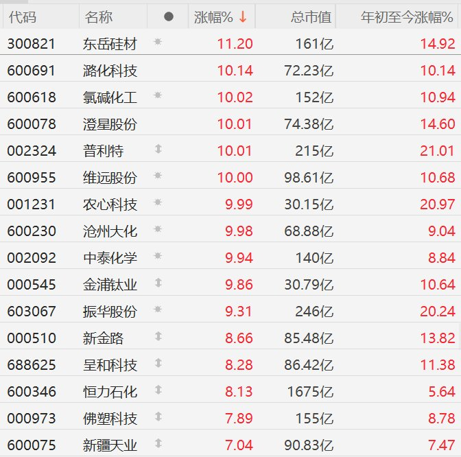 A股化工股全线走强,中泰化学等多股涨停