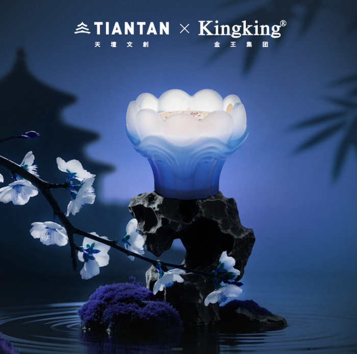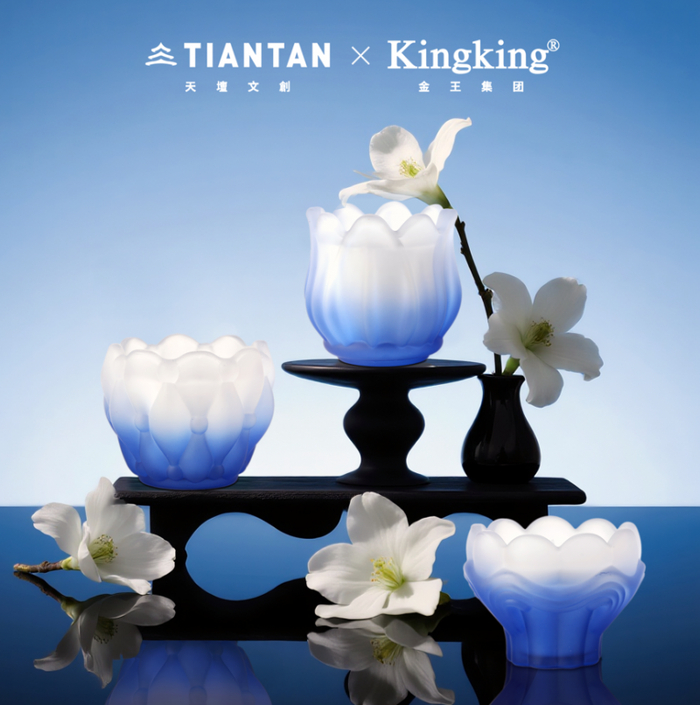 在与天坛文创打造“天坛花语祈愿礼盒”的过程中,青岛金王的设计研发团队深入与天坛文创团队交流、探讨,将天坛色调、明清皇家花卉等传统元素充分融入到产品设计理念。以瑾瑜蓝作为礼盒产品的主色调,与祈年殿的琉璃穹顶相辉映,赋予礼盒典雅、沉稳之美。香薰杯蜡蜡杯以花为形,以海棠、牡丹、莲花入香,烛光亮起,花香幽发,引人暂离尘嚣,在芬芳与幽蓝交织的定境中,感受冬至祭天时的肃穆,春分万物勃发的生机,夏至甘霖润万物的碰撞,秋分谷穗低垂的稻香。
