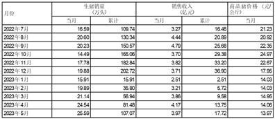2023年1-7月,公司累计销售生猪156.54万头,较去年同期增长42.65%;累计销售收入24.73亿元,较去年同期增长50.24%。