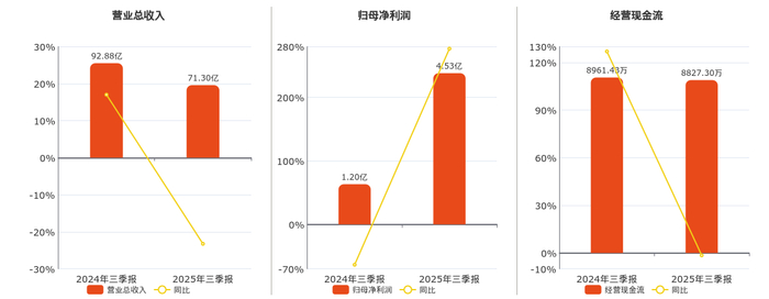 能特科技(002102.SZ):2025年三季报净利润为4.53亿元、同比较去年同期上涨276.59%