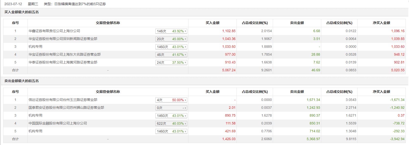 7月12日,三变科技今日涨停,龙虎榜数据显示,上榜营业部席位全天成交1.19亿元,占当日总成交金额比例为21.76%。其中,买入金额为6493.27万元,卖出金额为5415.66万元,合计净买入1077.61万元。
