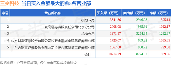 证券之星消息,沪深交易所2025年11月6日公布的交易公开信息显示,三变科技(002112)因日换手率达到20%的前5只证券登上龙虎榜。此次是近5个交易日内第3次上榜。