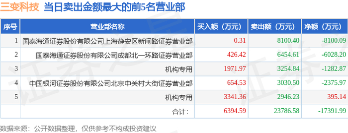 11月6日三变科技(002112)龙虎榜数据:游资上海超短帮、北京中关村上榜