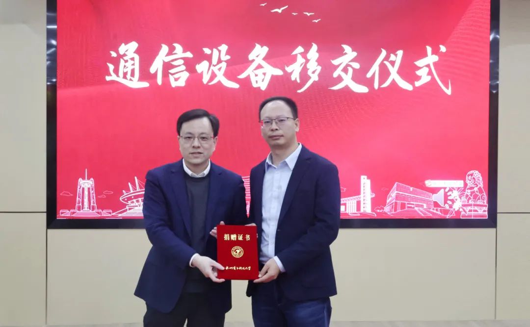 11月28日下午,三维通信股份有限公司与杭州电子科技大学通信设备捐赠暨联合实验室授牌仪式在杭州电子科技大学隆重举行。杭州电子科技大学国有资产与实验室管理处处长徐铭恩、通信工程学院多位校方领导及师生代表,三维通信通信业务副总经理吴志坚等一行领导出席本次仪式,共同见证校企合作这一重要时刻。