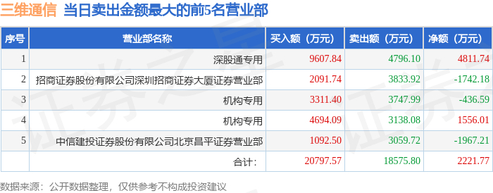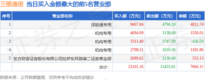 10月22日三维通信(002115)龙虎榜数据:机构净买入2301.28万元,北向资金净买入4811.74万元
