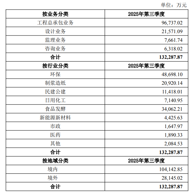 截至2025年第三季度末,公司累计已签约未完工的工程总承包项目数量为168个,合同金额约为79.2亿元。此外,报告期内已中标未签约项目5个,金额为5.33亿元。