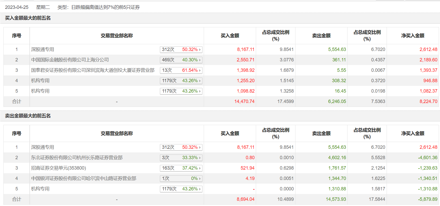 具体来看,机构买入2354.01万元,卖出1635.64万元,合计净买入718.37万元。此外,深股通专用、东北证券杭州长乐路证券营业部分别卖出5554.63万元、4602.16万元;深股通专用、中国国际金融上海分公司分别买入8167.11万元、2550.71万元。