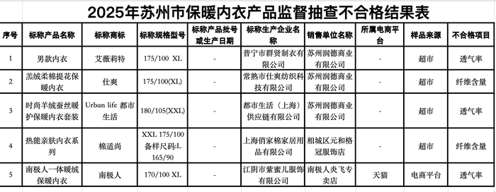 近日,苏州市市场监督管理局2025年保暖内衣产品质量市级监督抽查情况公告(第10期),南极人品牌赫然在列。
