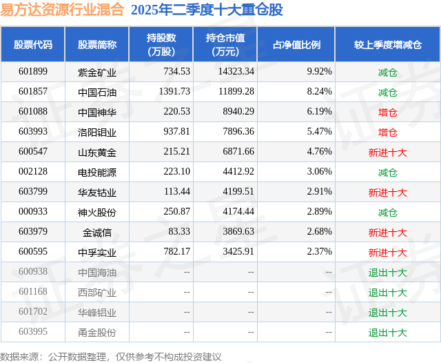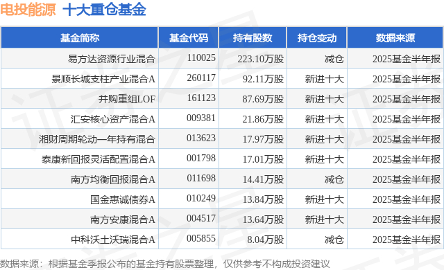 根据2025基金半年报公募基金重仓股数据,重仓该股的公募基金共14家,其中持有数量最多的公募基金为易方达基金的易方达资源行业混合。易方达资源行业混合目前规模为14.44亿元,最新净值1.848(9月30日),较上一交易日上涨3.18%,近一年下跌9.17%。该公募基金现任基金经理为朱运。