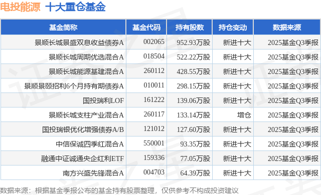 重仓电投能源的前十大公募基金请见下表: