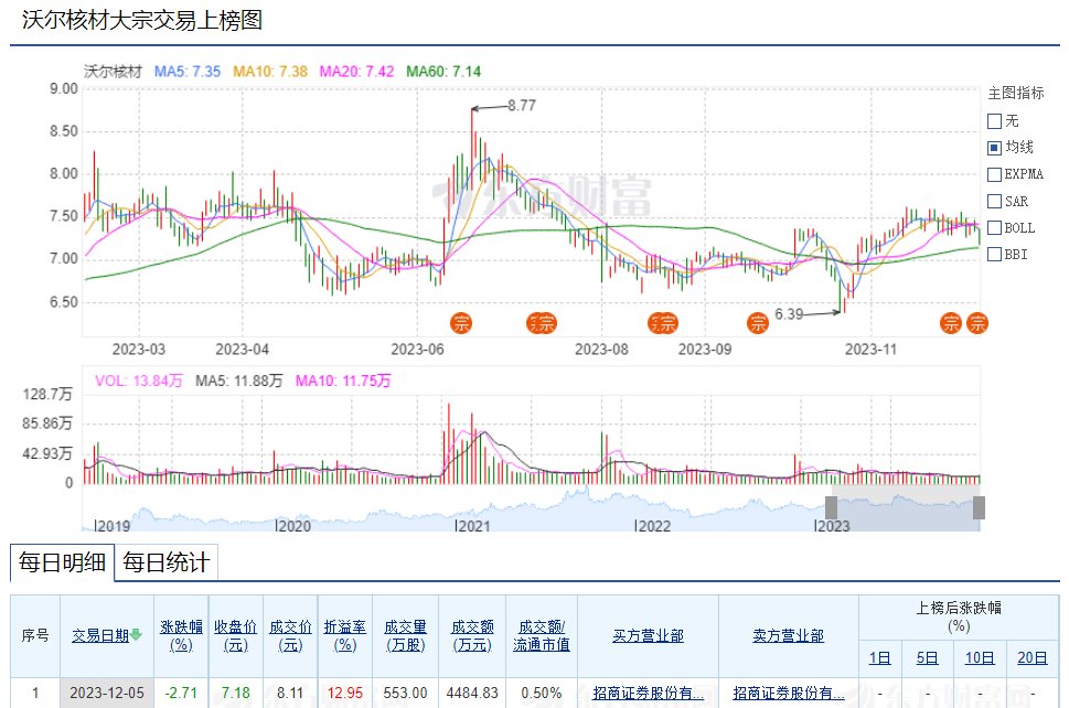 沃尔核材昨日大宗交易成交4484.83万元 溢价率12.95%
