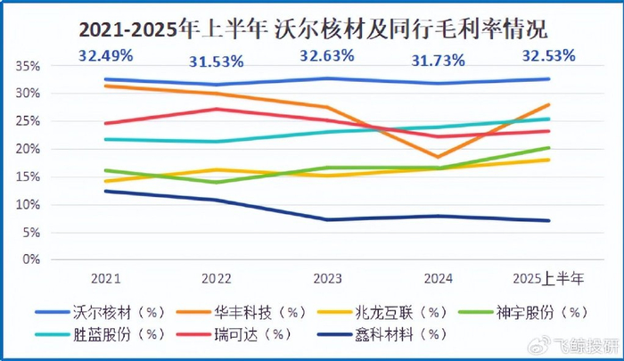 2021-2025年上半年,公司毛利率维持在30%以上,与同行华丰科技、兆龙互联等拉开了不小的差距。