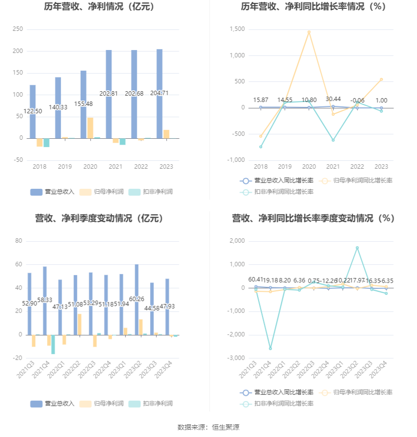 数据显示,2023年公司加权平均净资产收益率为15.55%,较上年同期增长19.32个百分点;公司2023年投入资本回报率为12.20%,较上年同期增长16.28个百分点。