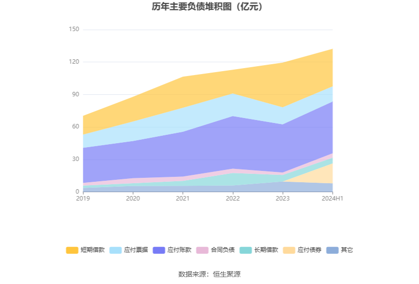 在偿债能力方面,公司2024年上半年末资产负债率为66.77%,相比上年末上升1.80个百分点;有息资产负债率为30.85%,相比上年末上升3.07个百分点。