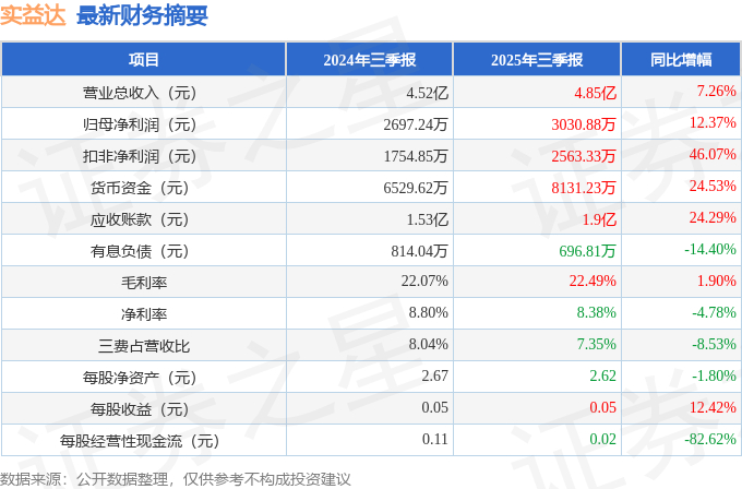 实益达(002137)2025年三季报简析:营收净利润同比双双增长