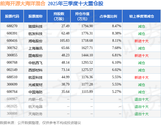 前海开源大海洋混合的前十大重仓股如下: