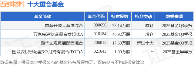 重仓西部材料的公募基金请见下表: