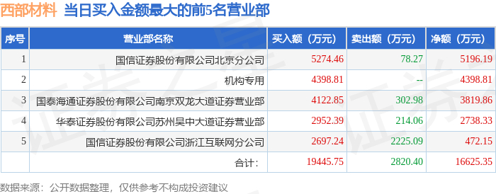 1月13日西部材料(002149)龙虎榜数据:游资南京双龙大道上榜