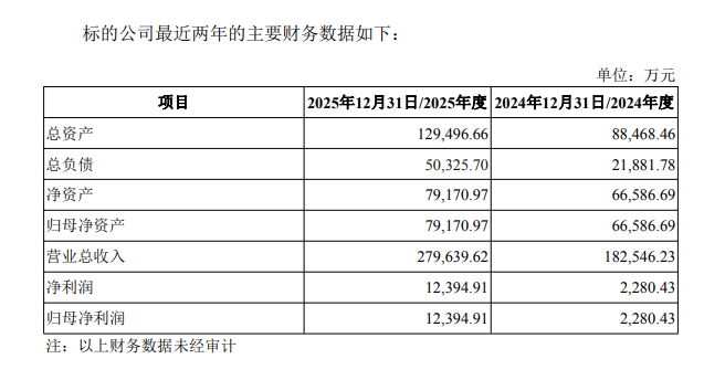 根据交易预案数据计算,上述两家标的公司2025年营收合计约为30亿元,净利润则在1.9亿元左右。