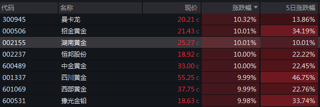 金价破5000黄金股狂飙!业绩并购双驱 湖南黄金“一字”涨停