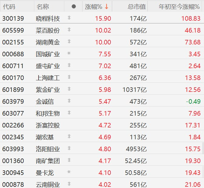 A股异动丨黄金概念股走强,湖南黄金涨停