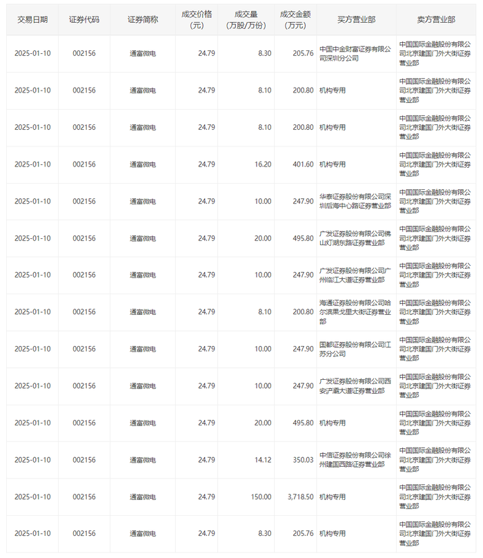 通富微电今日大宗交易折价成交301.22万股,成交额7467.25万元