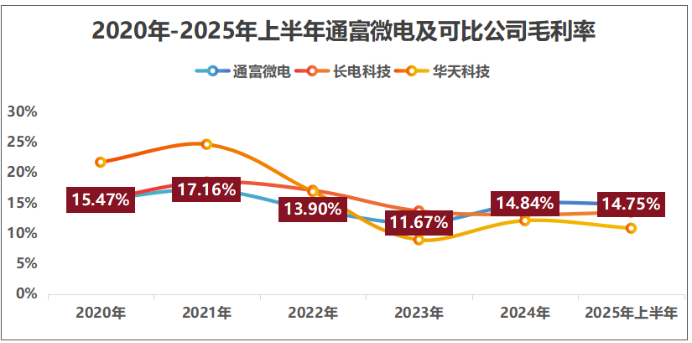 2025年上半年,通富微电前面收购的两大AMD子公司的净利润已经达到7.26亿,带动公司盈利能力远超同行企业。同期,通富微电毛利率达到14.75%,高于长电科技和华天科技。