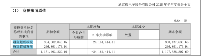 2015年,通富微电买下AMD在苏州和槟城封测工厂各85%股权。直到2025年上半年末,公司账上还有并购所带来的11.27亿商誉。