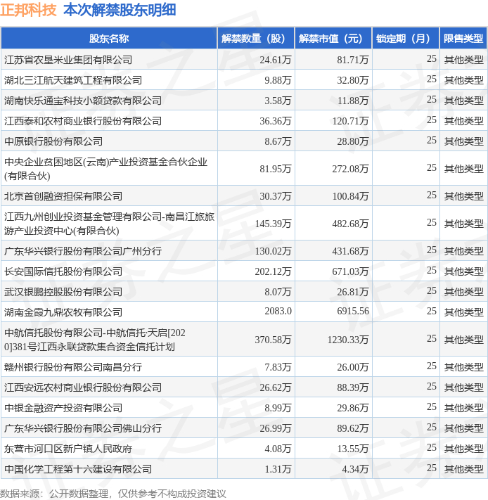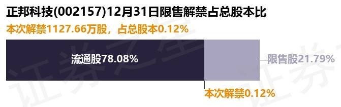 正邦科技(002157)1127.66万股限售股将于12月31日解禁,占总股本0.12%