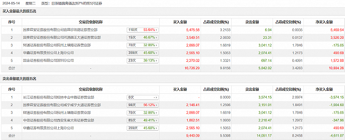 具体来看,知名游资现身龙虎榜,方新侠(中信证券股份有限公司西安朱雀大街证券营业部)净卖出347.96万元。此外,国泰君安证券宜昌珍珠路证券营业部、国泰君安证券河源越王大道证券营业部分别买入5475.58万元、3549.51万元;长江证券桂林中山中路证券营业部、国泰君安证券咸宁咸宁大道证券营业部分别卖出3574.15万元、3151.01万元。