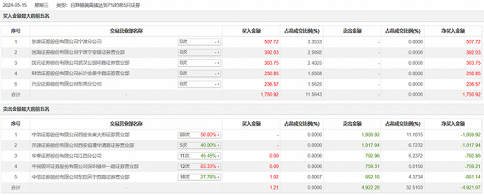 具体来看,知名游资现身龙虎榜,方新侠(中信证券西安朱雀大街证券营业部)、开源证券西安临潼华清路证券营业部分别卖出1689.92万元、1017.94万元;东莞证券宁波分公司、国海证券宁波宁穿路证券营业部分别买入507.72万元、392.03万元。