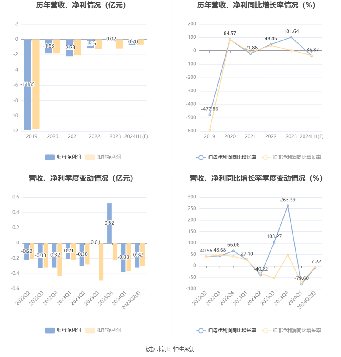 中证智能财讯 惠程科技(002168)7月10日披露2024年半年度业绩预告,预计2024年半年度归母净利润亏损6000.00万元至8000.00万元,上年同期为-5114.20万元;扣非净利润亏损5700.00万元至7700.00万元,上年同期为-4996.62万元。以7月9日收盘价计算,惠程科技目前市盈率(TTM)约为-230.95倍至-59.63倍。