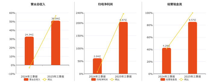 公司营业总收入为38.09亿元。归母净利润为6.87亿元。经营活动现金净流入为8.57亿元。