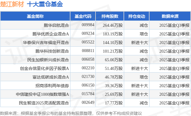 重仓楚江新材的前十大公募基金请见下表: