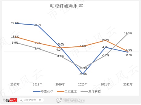 多方因素压力下,公司粘胶短纤业务营收逐年下降,毛利率持续为负。
