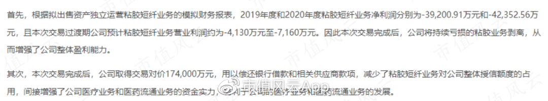 而公司认为,其自身粘胶纤维业务经营情况低于行业整体水平,三年平均开工率为54.3%,因此以低于评估结果的价格出售标的资产。