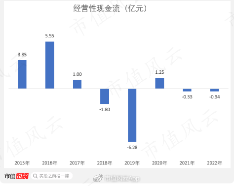 连年亏损的同时,公司的经营性现金流也表现欠佳,自2018年起基本为负,造血能力明显下降。