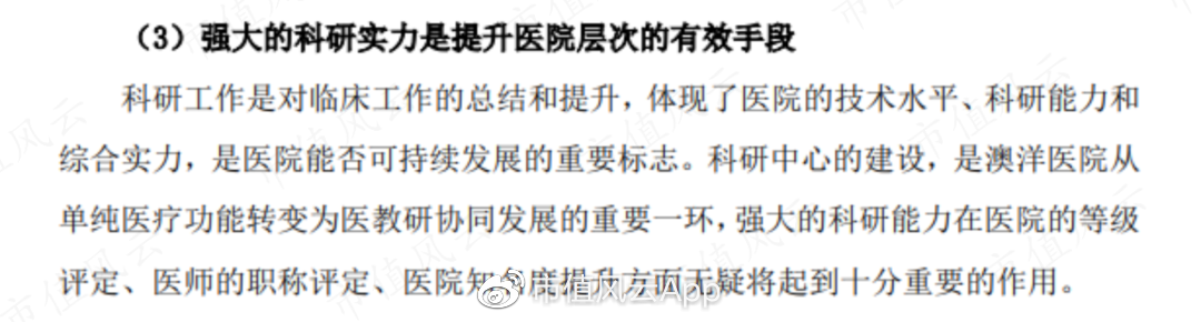 在定增公告书中,公司口口声声说科研实力是医院能否可持续发展的重要标志,但最终,该定增项目被取消,而且公司2022年研发开支为0。