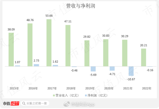 近年来公司营收呈下滑趋势,净利润也持续为负。彻底转型的第一年,2022年也未能扭亏为盈,净亏损0.2亿。