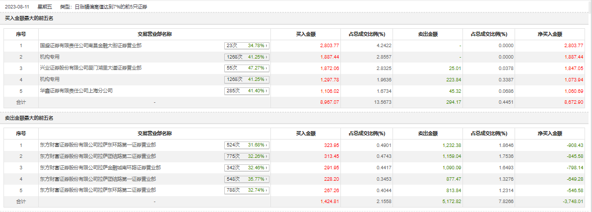 8月11日,创新医疗今日涨停,全天换手率达17.26%,振幅达11.88%。龙虎榜数据显示,营业部席位合计净买入4924.89万元。其中,机构买入3185.22万元,卖出223.84万元,合计净买入2961.38万元。此外,国盛证券南昌金融大街证券营业部、兴业证券厦门湖里大道证券营业部分别买入2803.77万元、1872.06万元;东方财富证券拉萨东环路第一证券营业部、东方财富证券拉萨团结路第二证券营业部分别卖出1232.38万元、1159.04万元。