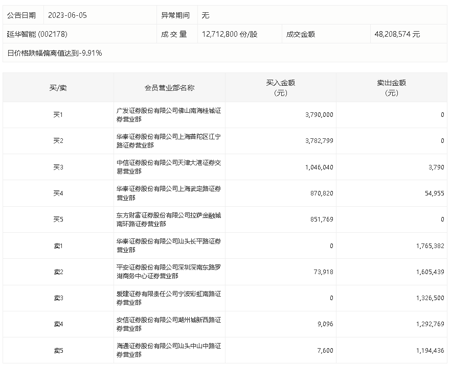 具体来看,华泰证券汕头长平路证券营业部、平安证券深圳深南东路罗湖商务中心证券营业部分别卖出176.54万元、160.54万元;广发证券佛山南海桂城证券营业部、华泰证券上海普陀区江宁路证券营业部分别买入379.00万元、378.28万元。