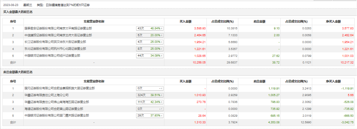 具体来看,知名游资现身龙虎榜,作手新一(国泰君安证券南京太平南路证券营业部)、中信建投证券南京王府大街证券营业部分别买入3586.93万元、2464.65万元;国元证券合肥金寨路凯旋大厦证券营业部、华鑫证券上海分公司分别卖出1119.91万元、1005.27万元。