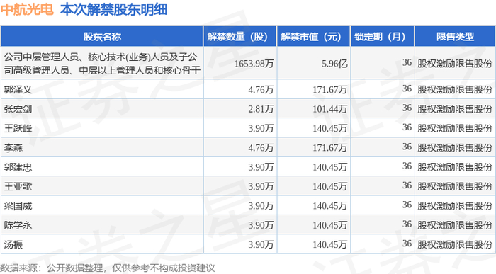 中航光电(002179)1689.69万股限售股将于1月6日解禁,占总股本0.8%