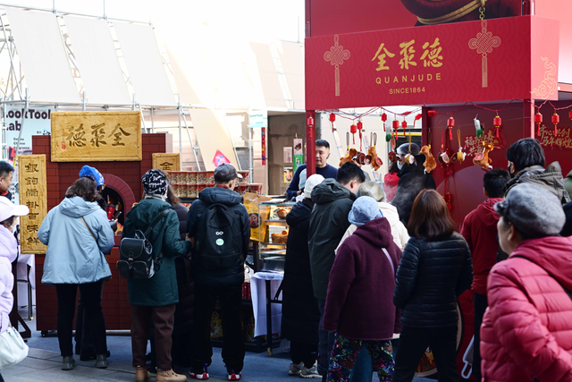 与此同时,全聚德、仿膳、四川饭店的众多经典美味也亮相隆福寺、厂甸、陶然亭等知名庙会市集,以醇厚老味道点亮京城新春烟火气。据悉,全聚德首次进驻隆福寺新春市集成为今年春节的一大亮点,和平门店、王府井店等积极参与市集活动,推出霸气烤鸭串、鸭杂酸辣粉、文创周边等年轻化产品,精准触达年轻消费群体,现场人气高涨,成为年味打卡新热点,带动展位销售业绩与口碑双丰收,拓宽品牌触达面。