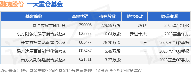 重仓融捷股份的公募基金请见下表: