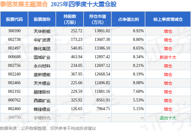 根据2025基金年报公募基金重仓股数据,重仓该股的公募基金共4家,其中持有数量最多的公募基金为泰信基金的泰信发展主题混合。泰信发展主题混合目前规模为15.47亿元,最新净值2.069(3月18日),较上一交易日下跌2.31%,近一年上涨85.79%。该公募基金现任基金经理为黄潜轶。黄潜轶在任的基金产品包括:泰信现代服务业混合,管理时间为2021年2月2日至今,期间收益率为-1.44%;