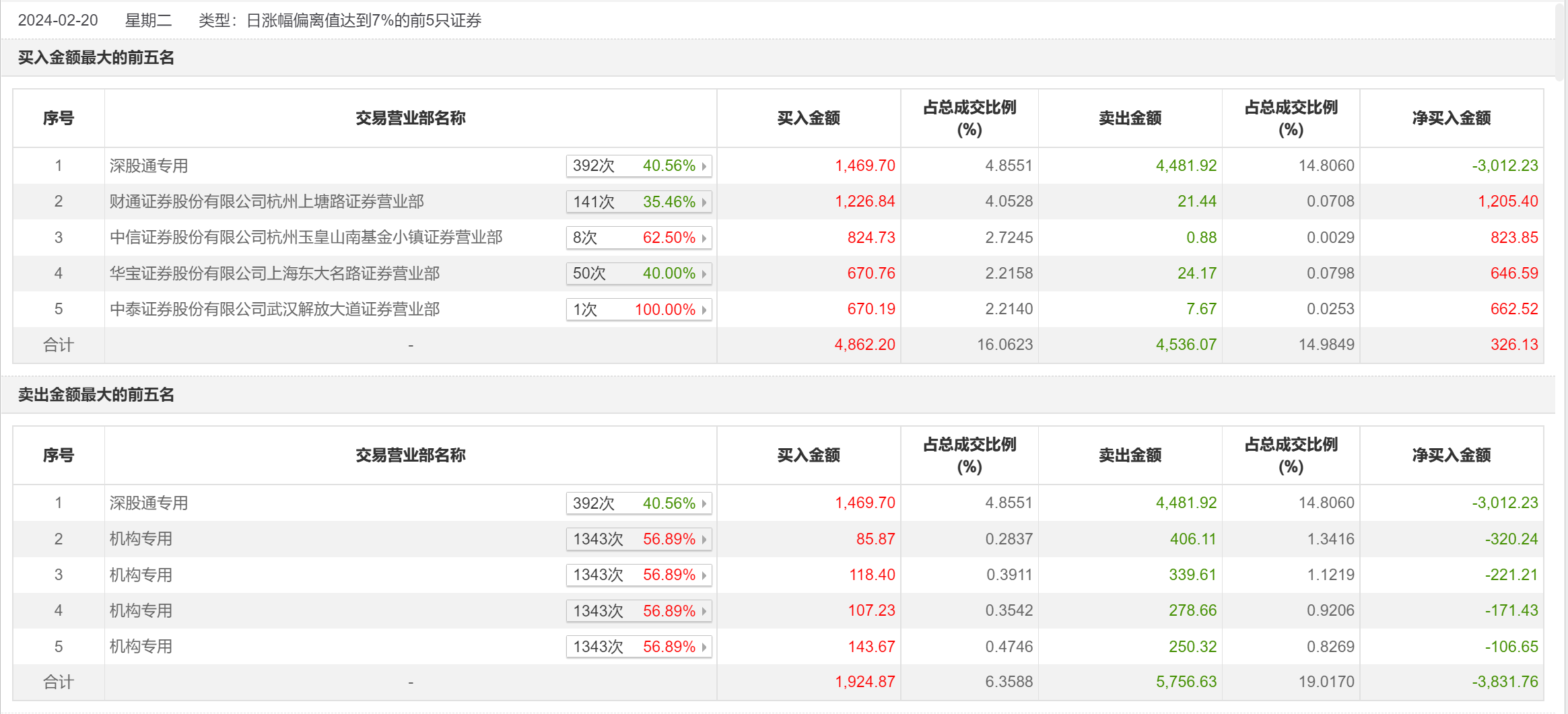 具体来看,机构买入455.17万元,卖出1274.71万元,合计净卖出819.54万元。此外,深股通专用、财通证券杭州上塘路证券营业部分别买入1469.70万元、1226.84万元;深股通专用、华宝证券上海东大名路证券营业部分别卖出4481.92万元、24.17万元。
